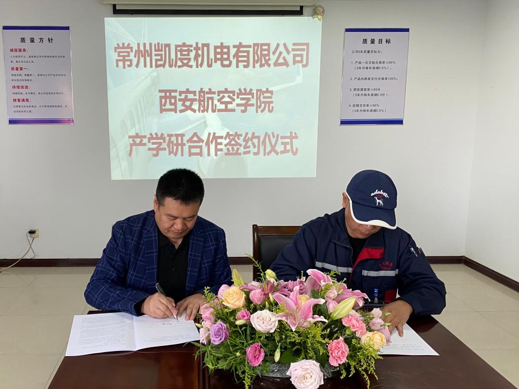 2020年11月7日上午9:00,kaiyun官网与常州凯度机电有限公司(以下简称凯度机电)“3+1”联合培养签约仪式在凯度机电顺利举行。出席签约仪式的有学院副院长彭玉海,学院党总支副书记赵慧凯,凯度机电总经理周旭,副总经理石龙飞等。签约仪式由凯度机电总经理周旭主持。