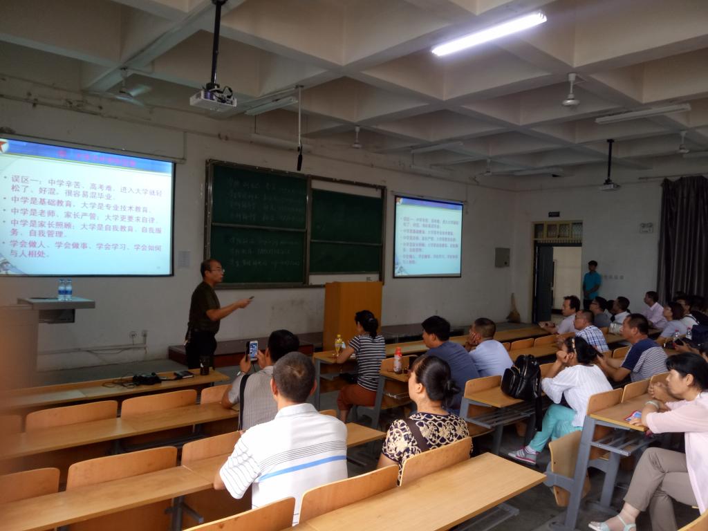 李庆详细介绍了学校的发展历史,针对大学教育与中学教育的主要区别向新生家长做了详细解说,并就如何配合学校共同做好学生培养工作向与会家长提出了若干建议。