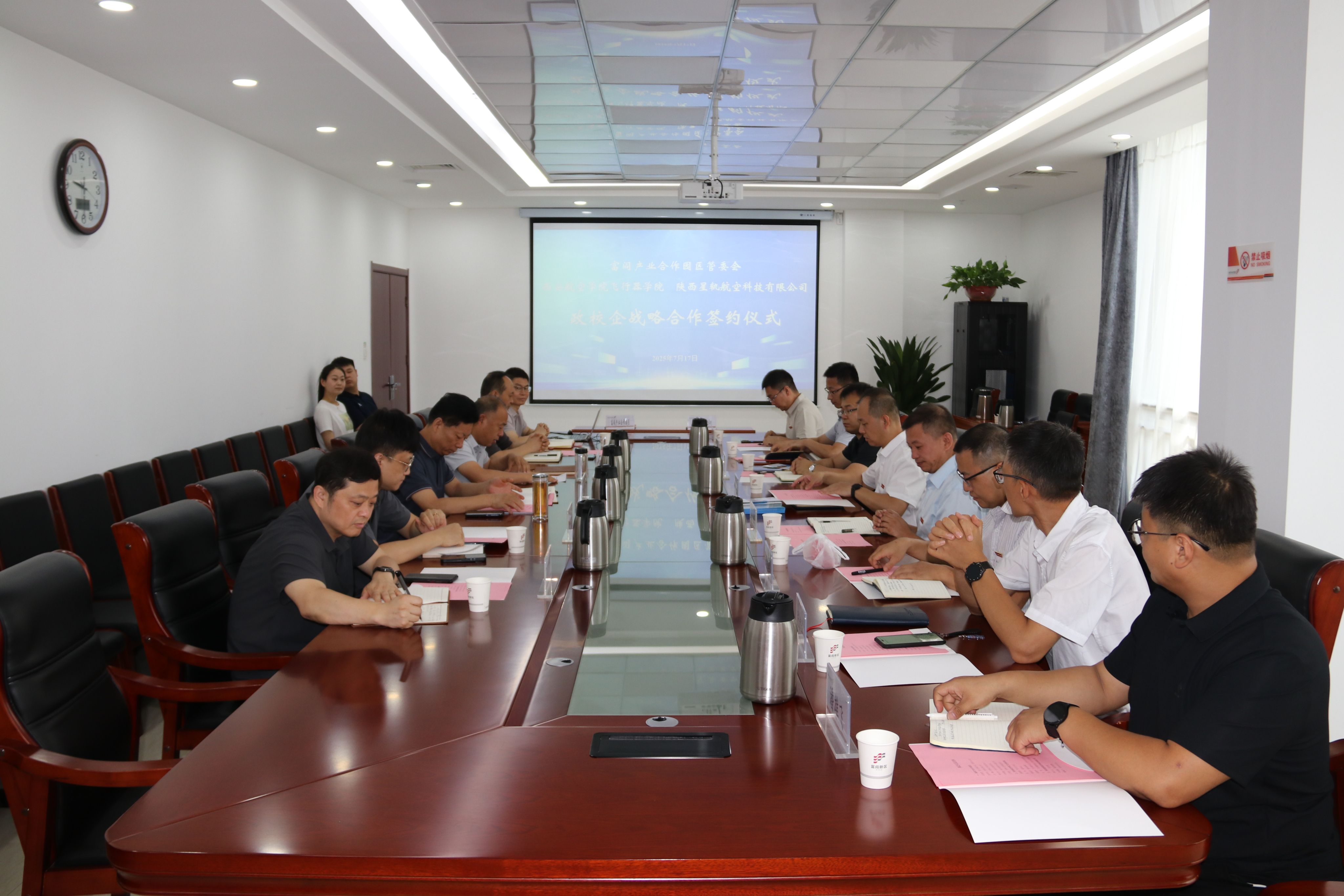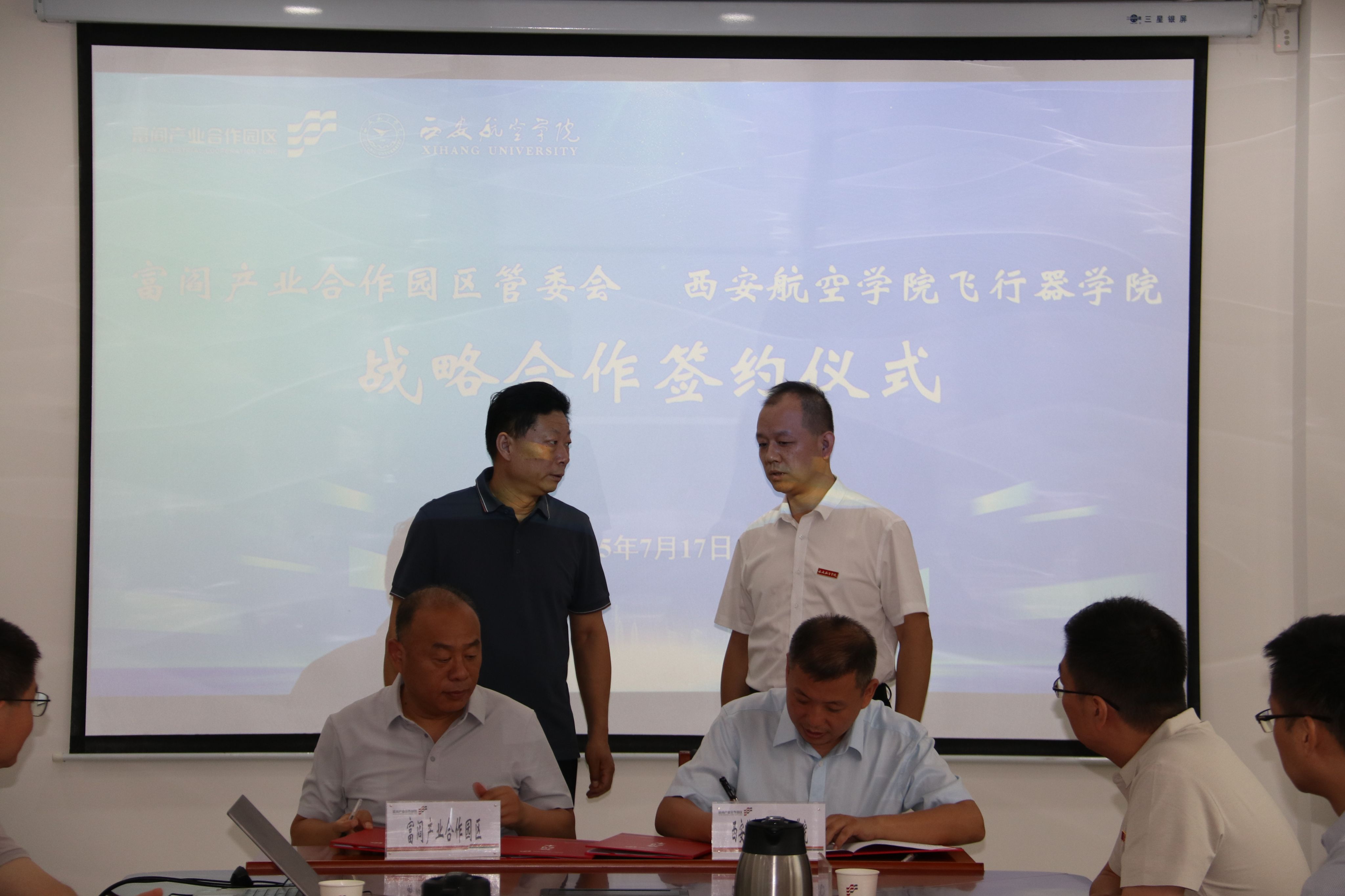 2025年7月17日kaiyun登录中国入口登录刘建强一行赴富阎产业合作园区交流座谈并举行合作签约仪式。出席签约仪式的有富阎产业合作园区党工委副书记/管委会主任杜银虎、管委会副主任张景龙、党群工作局负责人王一鹏、经济发展局局长黄永利、科技创新中心副主任刘松舰、党群工作局副局长王图忠、kaiyun登录中国入口登录党总支书记刘建强、副院长侯伟、院长助理/教工党支部书记谯盛军、飞行器动力工程专业负责人张建华、飞行器制造教研室专任教师李伟、陕西星轨航空科技有限公司总经理库大山、副总经理冷冠磊、综合办主任潘雄飞。