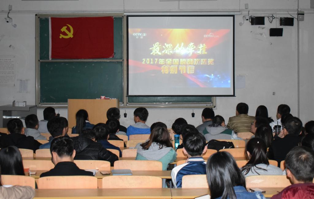 10月17日,是我国第四个国家扶贫日,也是第二十五个国际消除贫困日,党员作为我党先锋队伍,在未来党及国家的建设中必将发挥其党员先锋精神,按照陕西省高教工委通知要求,kaiyun官网积极组织师生党员于17晚九点十五分观看了中央电视台“2017全国脱贫攻坚奖特别节目”。学生党支部书记杜长龙一同观看了节目。