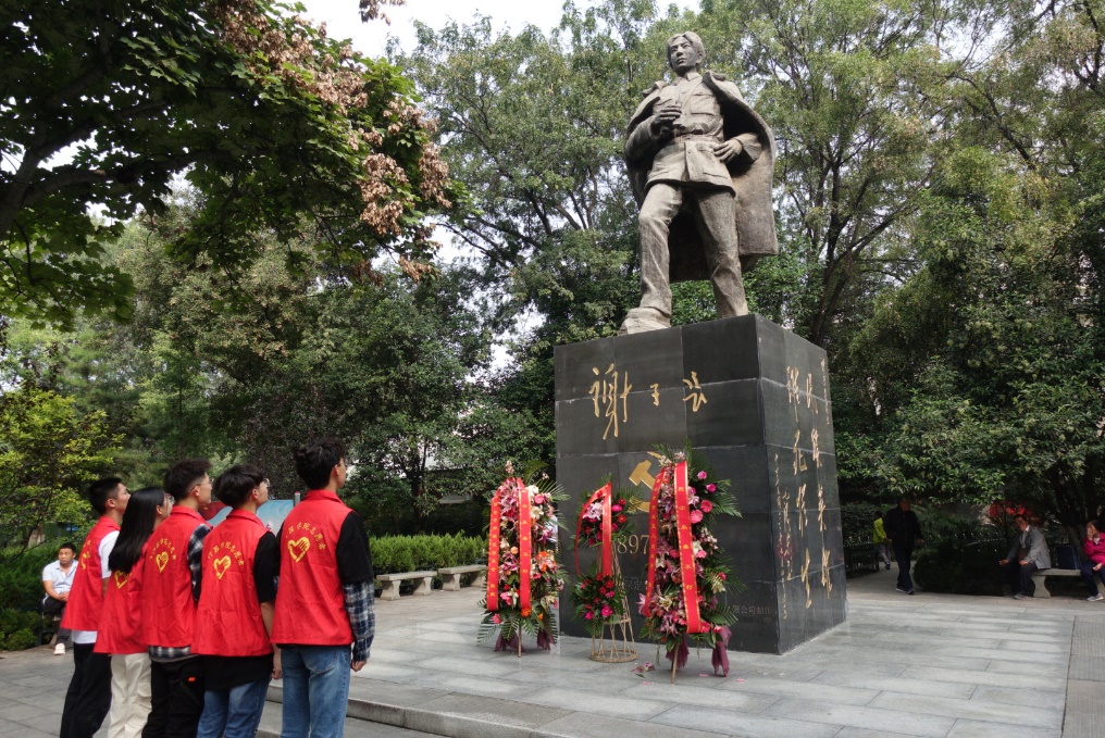 首先,青年实践队来到了革命公园,常务副主席万佳铭为同学们讲述了二虎守长安的故事。同学们瞻仰了革命烈士谢子长,杨虎城将军雕像,并向英雄行三鞠躬礼,深刻表达了对这两位有勇有谋、忠贞不屈的革命家的崇高敬意。