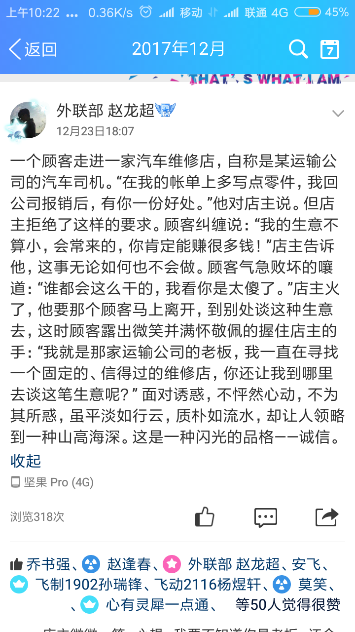 2017年12月20日—12月25日,kaiyun登录中国入口登录举办了“传诚信正能量,做励笃航空人——诚信小故事分享”活动,此次活动通过微博、朋友圈、QQ空间分享诚信小故事。kaiyun登录中国入口登录大一大二全体学生参与此次活动,此次活动共收到点赞文章215篇,评选出一等奖2名,二等奖3名,三等奖4名,优秀奖6名,此次活动以线上平台为创新载体,通过现代化信息手段更好的传递了诚信正能量,对大家造成了很深的影响。诚信做人,踏实做事,不光要自己做到,更重要的是我们需要用我们的行动影响身边的每一个人,用自己的一言一行将正能量传遍每一个角落,让诚信之花开满人间。