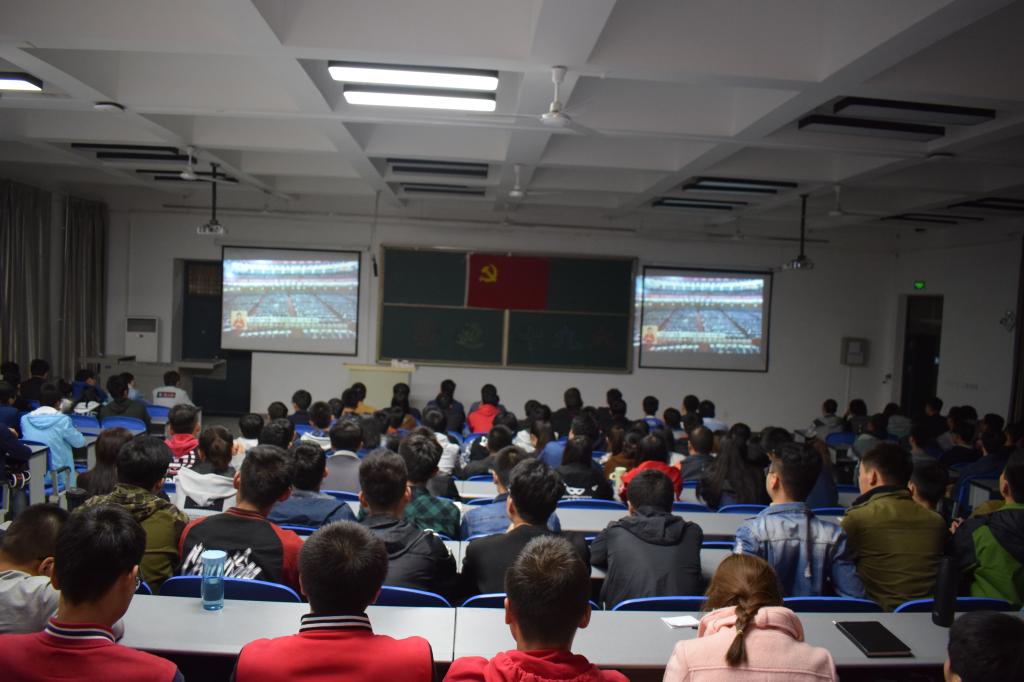 与此同时,kaiyun官网入党积极分子与学生会干部于晚18:30在阶梯二教室组织观看十九大,大家以认真的态度,庄重的姿态,崭新的面貌迎接十九大的召开。