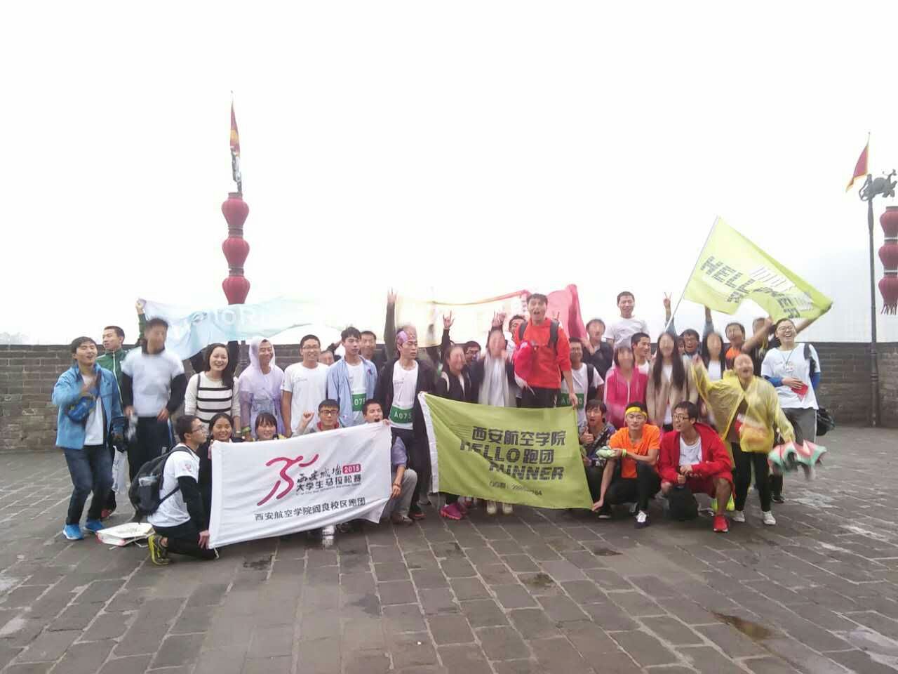 九点左右,在裁判员的枪声响起之后,近三千名来自西安各大高校跑步爱好者在领跑团的带领下开始了城墙马拉松之旅,雨似乎没有阻挡住任何一个热爱跑步同学的心,都在尽自己最大的努力跑向终点。十一时左右,当全部人员按时完成比赛之后,我们碰见了西安工业大学,西安体育学院,长安大学,西安外事学院跑团,在雨中,我们与他们合影留念,体现了当代大学生的精神品质。最后,我们一起为跑步加油,为跑团加油。