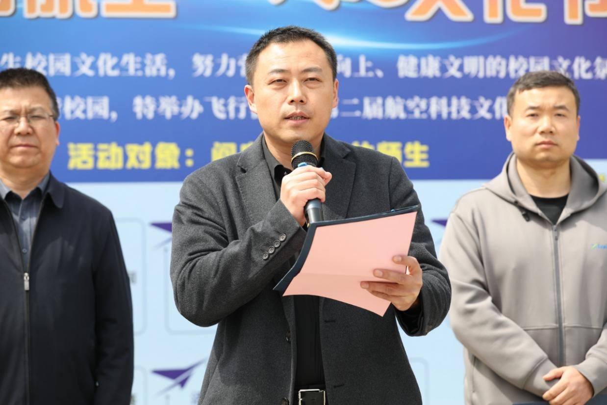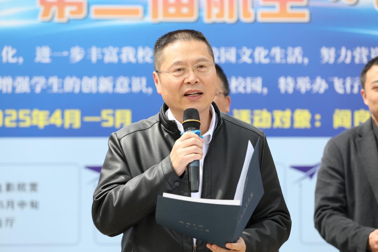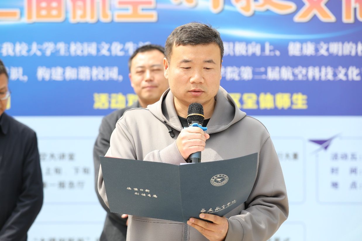 仪式伊始,由学生工作部(处)长李波致开幕词。李处长指出本届航空科技文化节以“创新引领未来,科技逐梦蓝天”为主题,旨在普及航空科技知识、弘扬航空文化精神,为同学们搭建一个学习、交流、实践、创新的平台,进一步丰富校园文化生活,营造积极向上、健康文明的校园氛围,推动校园精神文明建设,激发同学们的创新潜能,培养团队协作精神,助力构建和谐校园。