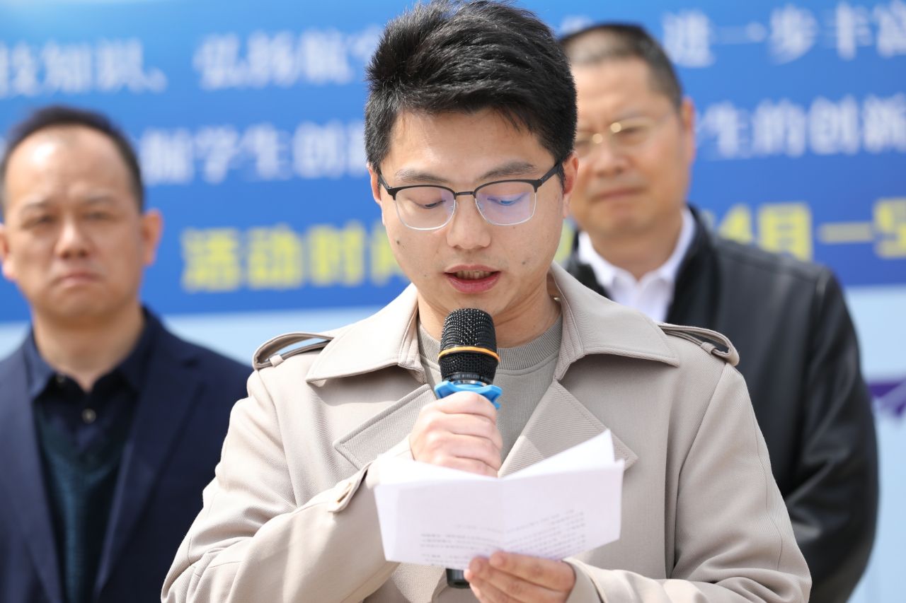 飞行器动力工程211班学生党康超代表同学们表态要以主人翁姿态投入到航空科技文化节的各项活动,以本届盛会为起点,用热情点燃创新之火,用行动诠释航空报国初心,为航空强国蓝图接续奋斗。教师代表申洋强调航空科技文化节是“科技与梦想交融的盛会”,不仅是展示航空成就的平台,更是学生“挥洒创意、挑战自我”的实践舞台。他呼吁学生们在竞技中学会协作,在挑战中实现成长。