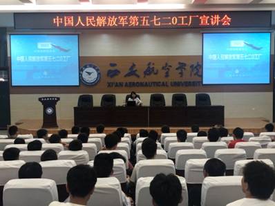 宣讲会开始,赵慧凯对5720厂进行了简要介绍。中国人民解放军第5720工厂是隶属空军装备部的国有大型修理保障性军队企业,承担着中国空军最先进军机修理保障任务,是国家重点型号装备修理保障基地。随后,赵慧凯从需求岗位、薪资待遇、“3+1”校企联合培养模式等方面做了较为详细的讲解。