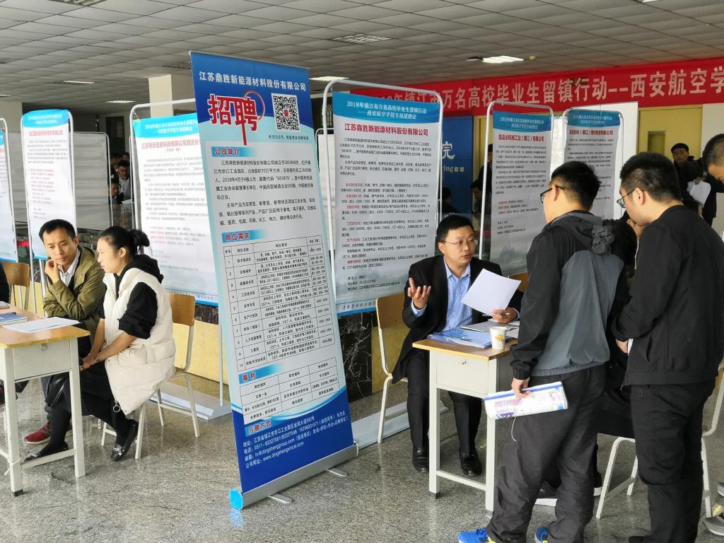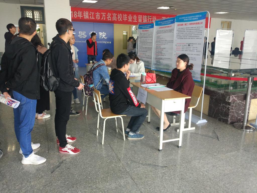 11月1日,由镇江市人社局张洪喜副主任带队的镇江市部分企业赴kaiyun官网阎良校区开展专场招聘会。此次招聘会共邀请江苏美龙航空部件有限公司、菲舍尔航空部件镇江公司、中船动力公司等14家优质企业, 需求涉及航空、机械、材料、财务、计算机等本专科专业,提供岗位345个。