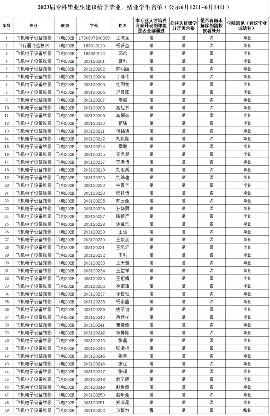 经学院初审,学院学士学位评定分委员会会议研究决定,2023届本专科学生毕结业名单及本科学位授予/不授予名单公示如下: