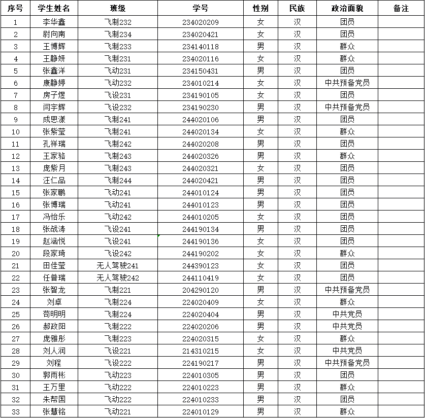 kaiyun登录中国入口登录(低空技术与工程学院)2024-2025学年国家励志奖学金获奖学生初审名单