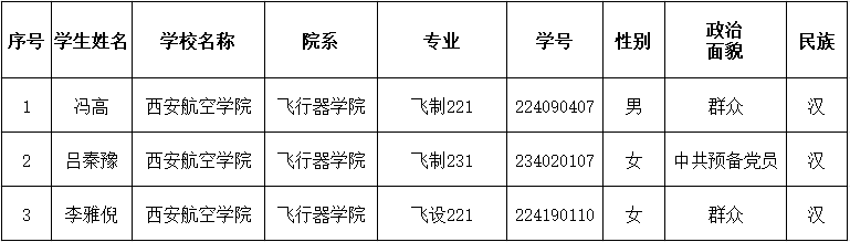 kaiyun登录中国入口登录(低空技术与工程学院)2024-2025学年国家奖学金推荐学生名单
