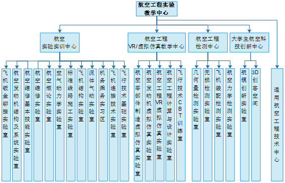 航空工程实验教学示范中心现有实验教师40人,其中教授5人,博士13人,现有实验室面积7529平方米,设备台套数1242,设备总值3378万元,下设设航空实验实训中心、航空工程VR虚拟仿真教学中心等四个实验教学中心和通用航空工程技术中心,共23个实验室。